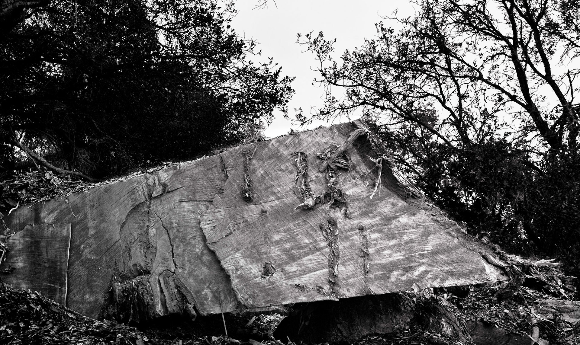 This project began with a personal sorrow, born of a reluctant decision. With a building permit for our future home in the balance, we complied with our town’s insistence that we remove an outcropping of “non-native” (therefore deemed “invasive”) redwood trees. And so, over the following decade, with frequent forays to arborist recycling yards, we documented the devastation of other such tree whose service was upended by the whims of individuals, companies, and towns/cities.
