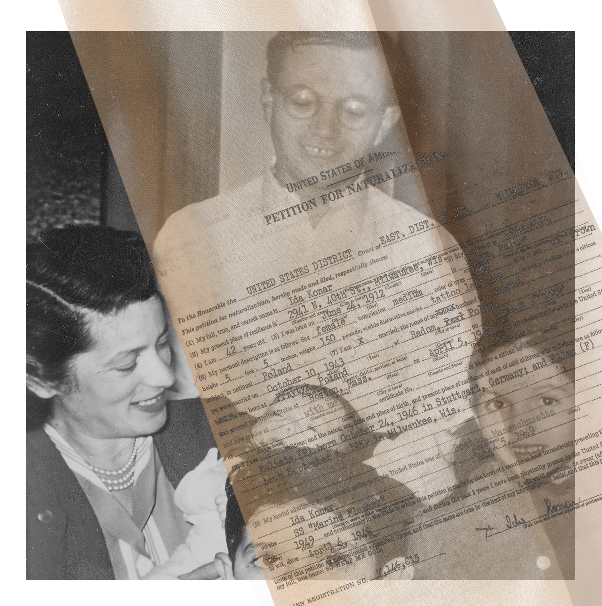 In late March of 1941, the more than 30,000 Jews of Radom (a city of 70,000) were required to register for an ID card, providing their address, occupation, relatives etc., The red dots on the map below represent the 1,200 some addresses from the ID applications added to the historic map by Luke Rothman in recent years. This information then enabled the enforcement of the subsequent Nazi decree: all Jews living in Radom had nine days to vacate their homes and move to one of two geschlossenen jüdischen Wohnbezirken (“closed Jewish residential districts,” commonly referred to as ghettos). Each of the families outside the boundaries of the ghetto, relocated to the ghetto indicated by the red outlines with only the belongings they could carry. Of course given the restrictions and extreme overcrowding, food and medicine quickly become scarce, and disease raged. We've applied the map atop an image of my mother -- envisioning that it was this landscape which likely framed what she experienced of the world, not just during her time in the ghetto, but likely well beyond.