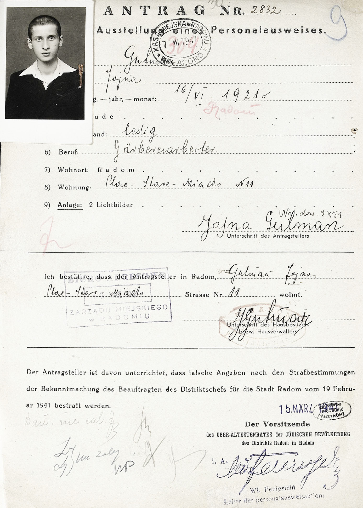 Below are the applications for IDs of some of my relatives who were rounded up and put into forced labor until the ghettos were liquidated, when the population was killed or sent to extermination camps for more forced labor and/or crematoria. Many of these faces I saw for the very first time this past year as I dug through the JRI-Poland archives that have surfaced these documents. Of Radom's 30,000 Jews, it is estimated that a few hundred survived, among these my father and mother.