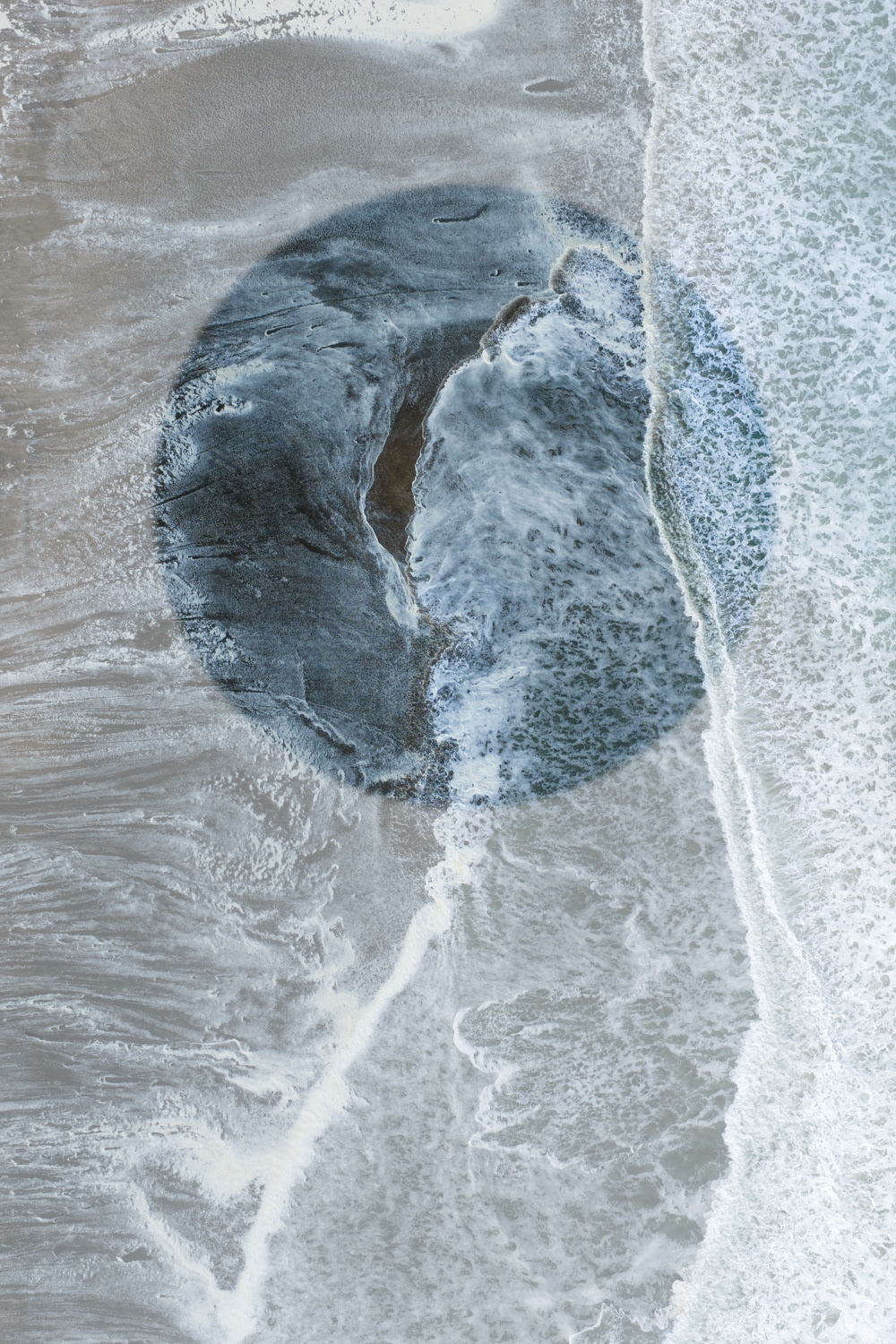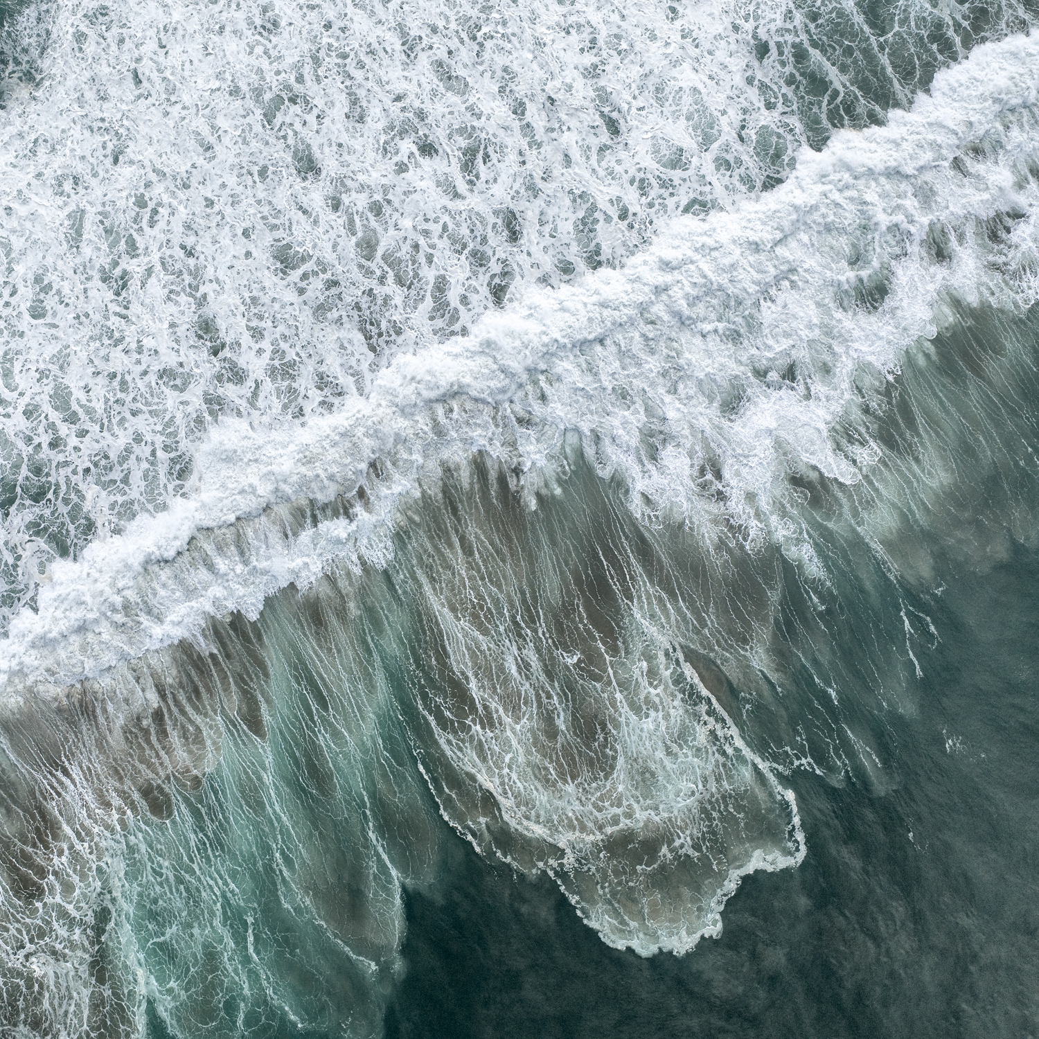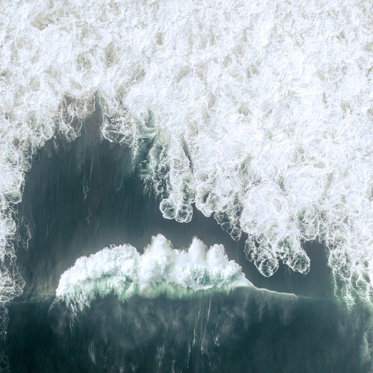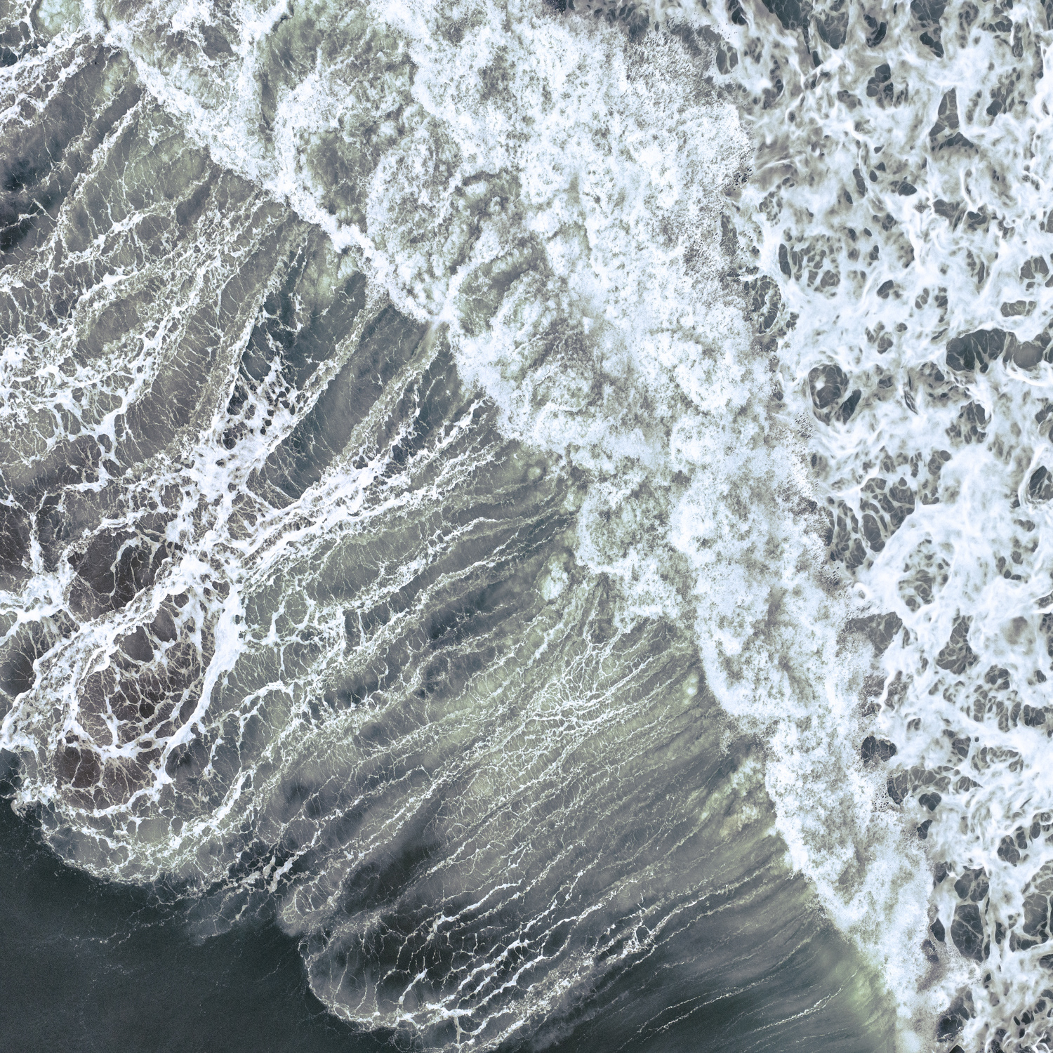 Photographing surf without the grounding of horizon or shore, we seek to reveal the subtle, powerful structures of water in turbulence: its neuroanatomy. What becomes visible are lace-like white filaments, delicate yet robust, spreading across blue fields in fleeting configurations that exist for mere seconds before being reabsorbed into the body of water from which they emerged.