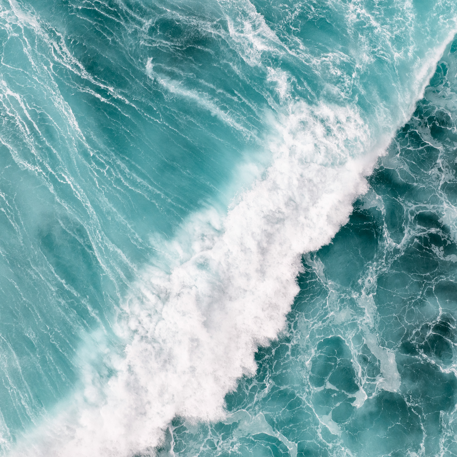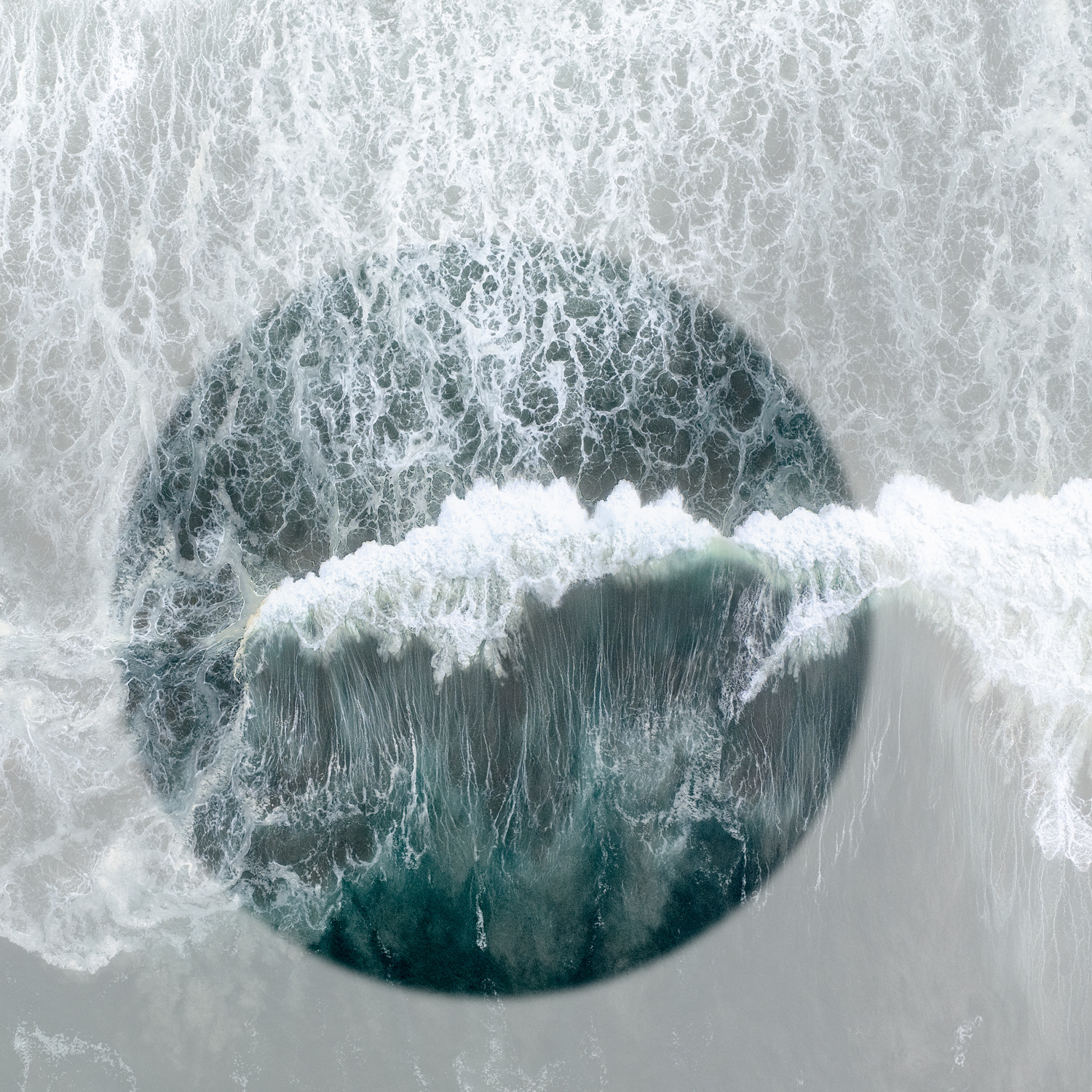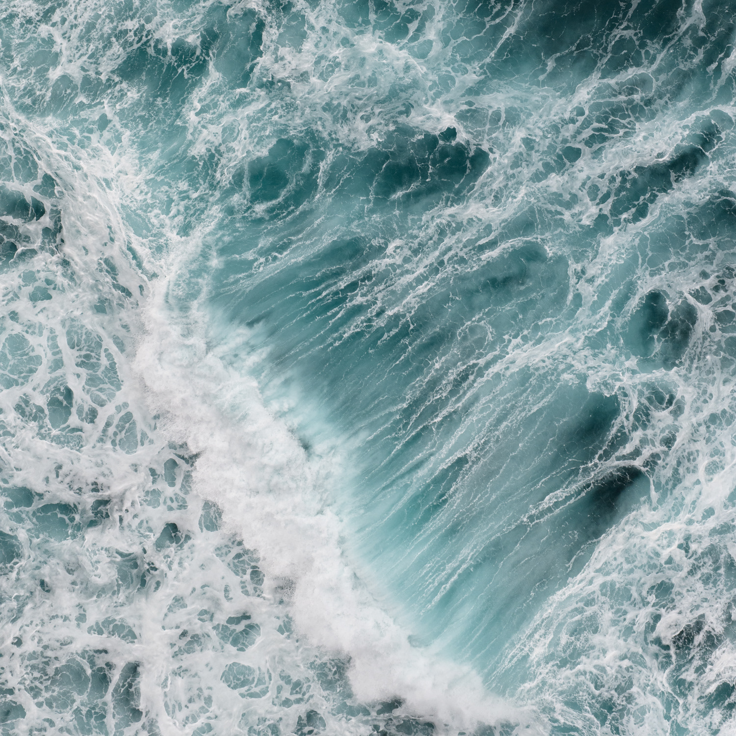 These images bear an uncanny resemblance to cerebral neurons visible under a microscope — a connection rooted in Steve's earlier career as a psychophysiologist studying the way the human nervous system responds to stress and anxiety. Both the ocean and the nervous system are complex systems responding to force, manifesting activation and return: turbulence arising, intensifying, and dissolving back into a baseline state awaiting the next surge. In certain images, where the composition invites it, we quiet the surrounding field so the eye travels inward — evoking at once the view through a microscope and the curve of the earth from above.