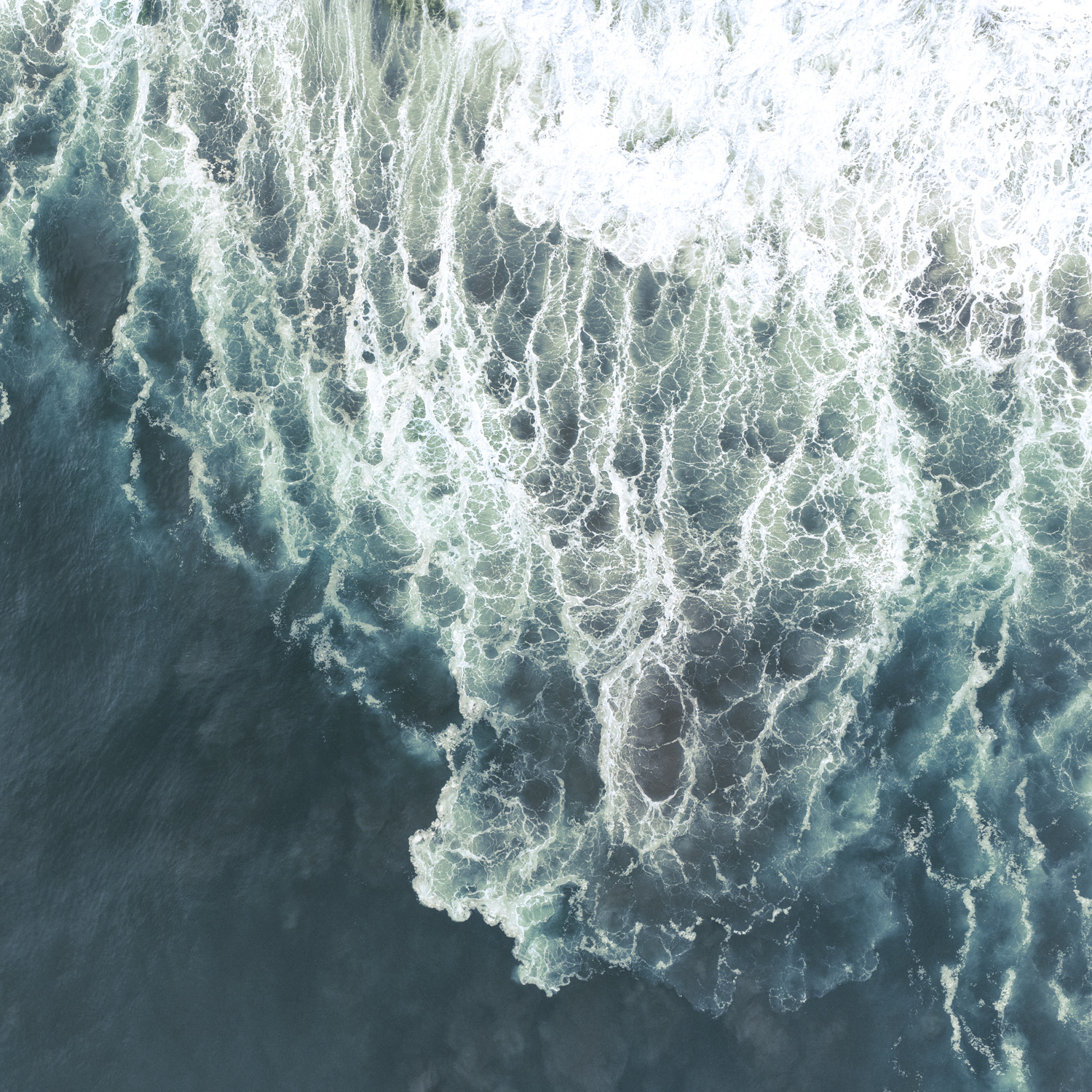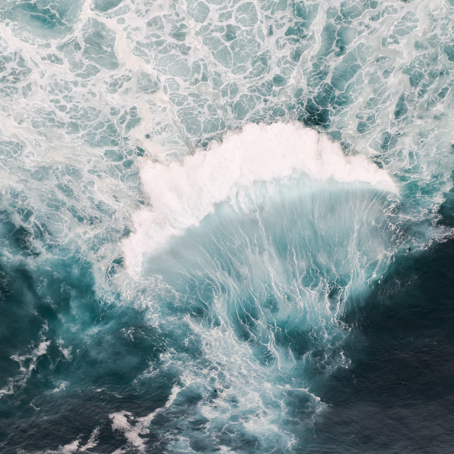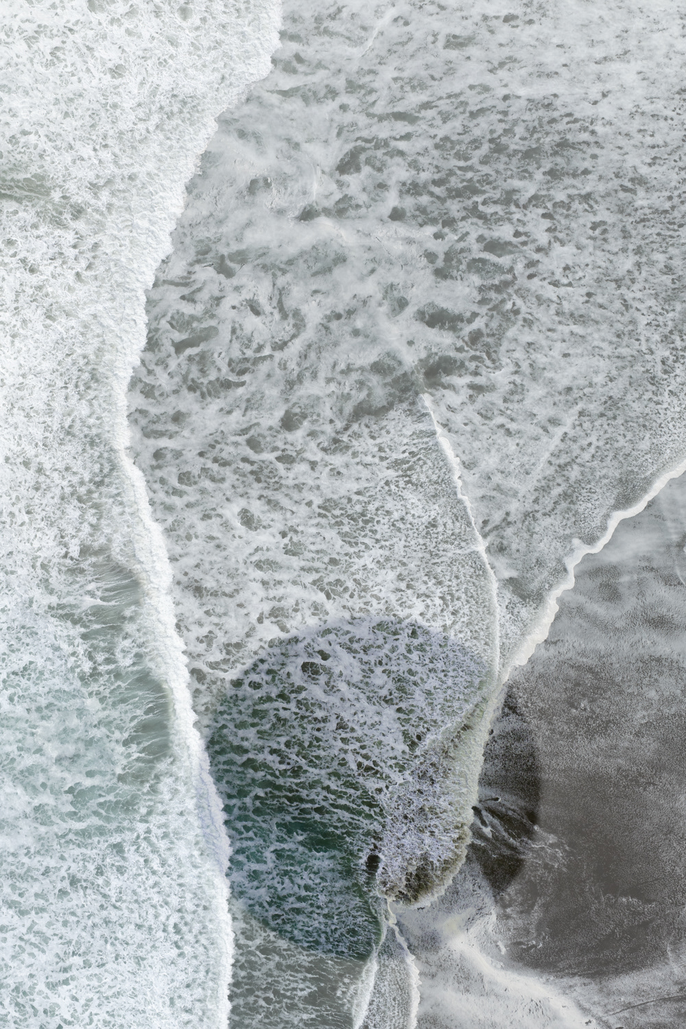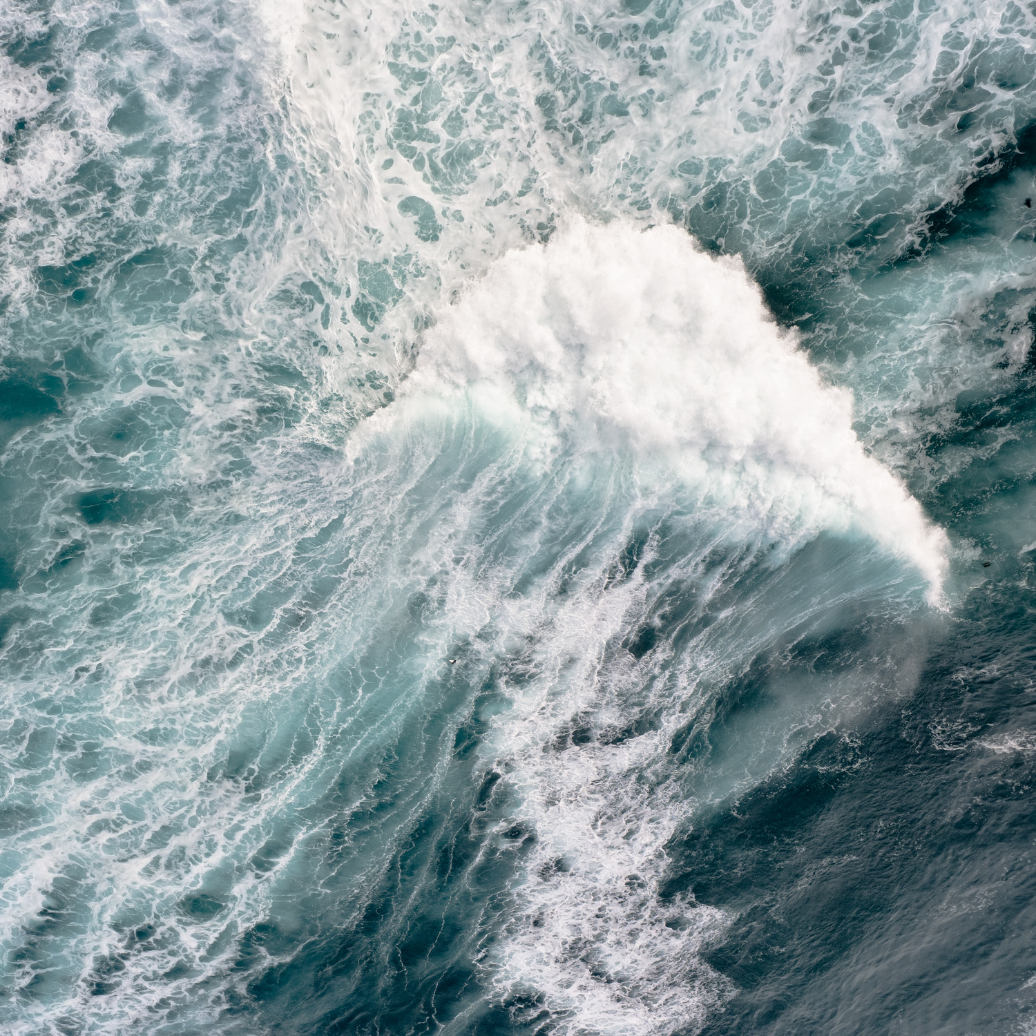 These images bear an uncanny resemblance to cerebral neurons visible under a microscope — a connection rooted in Steve's earlier career as a psychophysiologist studying the way the human nervous system responds to stress and anxiety. Both the ocean and the nervous system are complex systems responding to force, manifesting activation and return: turbulence arising, intensifying, and dissolving back into a baseline state awaiting the next surge. In certain images, where the composition invites it, we quiet the surrounding field so the eye travels inward — evoking at once the view through a microscope and the curve of the earth from above.